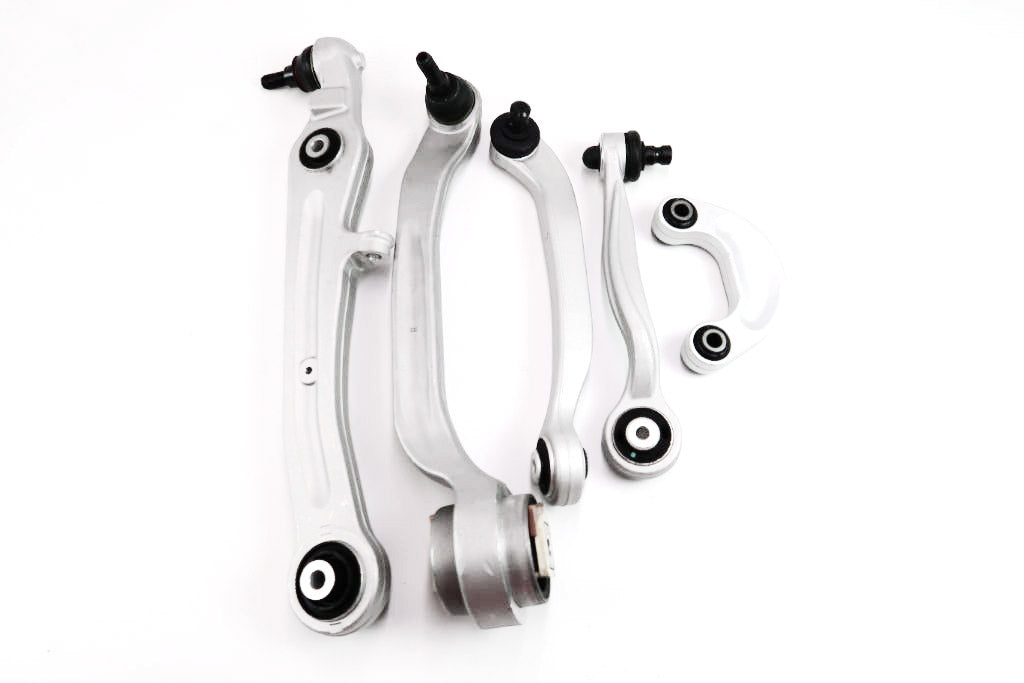 "Enhance the performance and stability of your Bentley Continental Gt Gtc Flying Spur with our top-of-the-line suspension control arms and sway bar link. Made from premium quality materials, this set includes 5 pieces consisting of right passenger side forward and rearward upper and lower arm wishbone links, along with 1 sway bar link. Designed for W12 engines and compatible with models from 2004 to 2017, our control arms are part numbers 3W0407506, 3W0407510, 3W0407694, and 3W0407151, while the sway bar link can be either 3w0411317b or 3w0411317c.